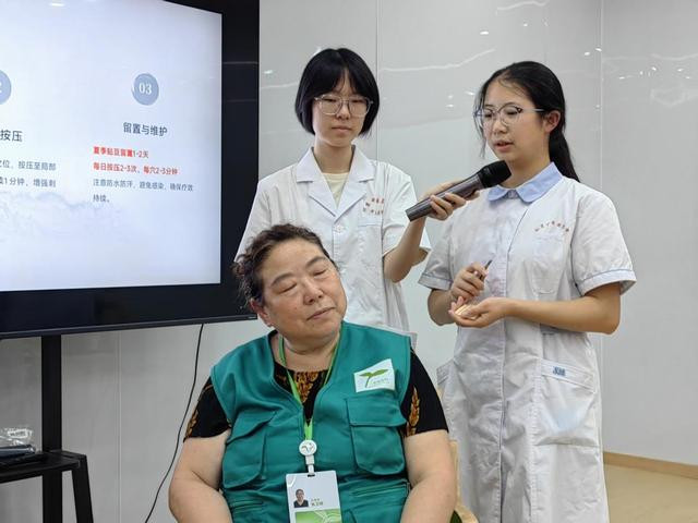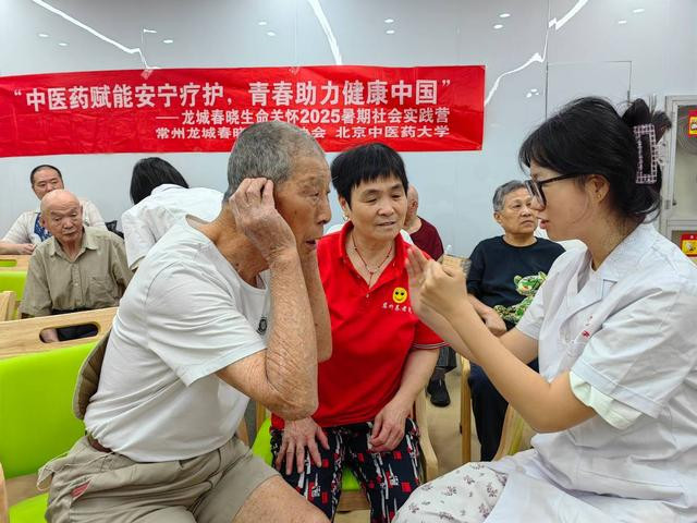 在协会的带领下,同学们走进常州市肿瘤医院、仁慈医院、北港街道社区卫生服务中心、玖玖江南康养中心、慈竹养老护理院、清东社区和协会服务对象家庭。在病房里、在社区中,大家积极应用所学,开展脉诊、耳穴压豆服务,为老人缓解身体不适;引入中药香膏等芳香疗法舒缓情绪。以熟练的中医技能和真诚的人文关怀,发挥着中医技术“简、便、验、廉”的特色优势,其疗效与温情赢得了认可与喜爱,生动诠释中医药在安宁疗护中的独特价值。