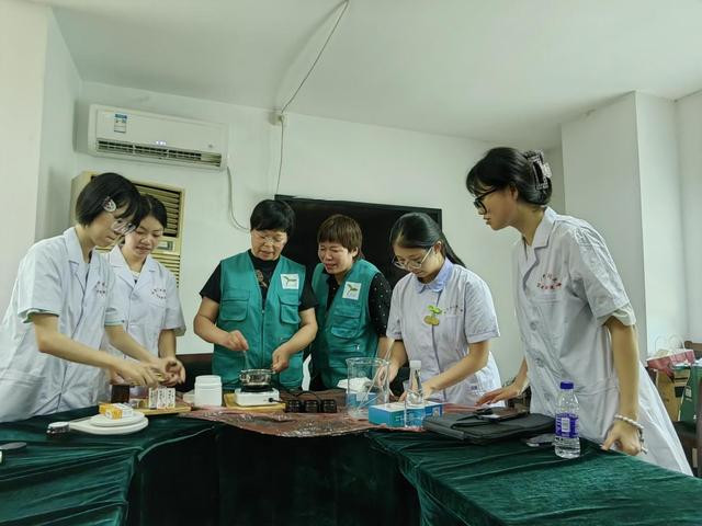同学们在协会认真调研访谈、聆听生命故事、积极观摩互动,围绕安宁疗护志愿服务、中医药文化传播等展开对话。大家互相学习香膏的精油调制和香囊的药材搭配,交流体验耳穴压豆和五音疗法,取长补短,拾遗补缺,以提高自身服务技能。